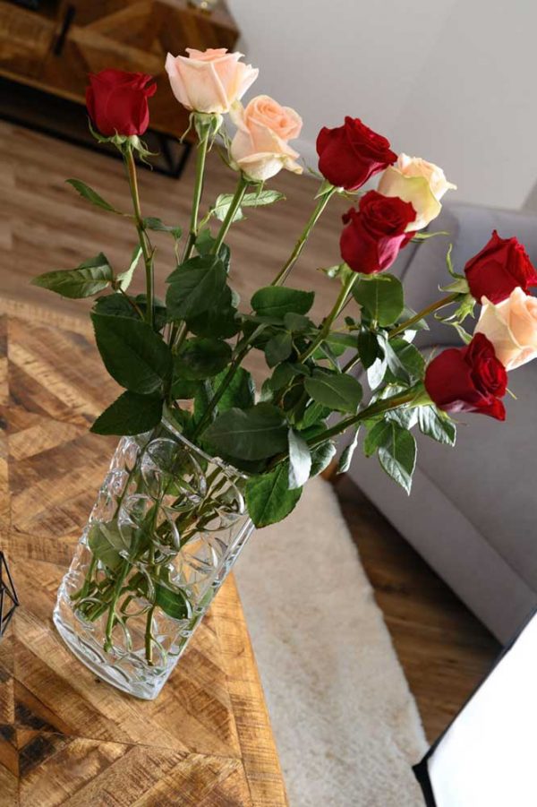 Inspired by the Deco style this rectangular vase (Oval from above) gives a beautiful optic effect.