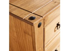 The Mex 2 + 2 Chest of Drawers is crafted in solid waxed wood, so that it has a subtle sheen. It features 2 side-by-side drawers at the top, plus two full width drawers underneath: